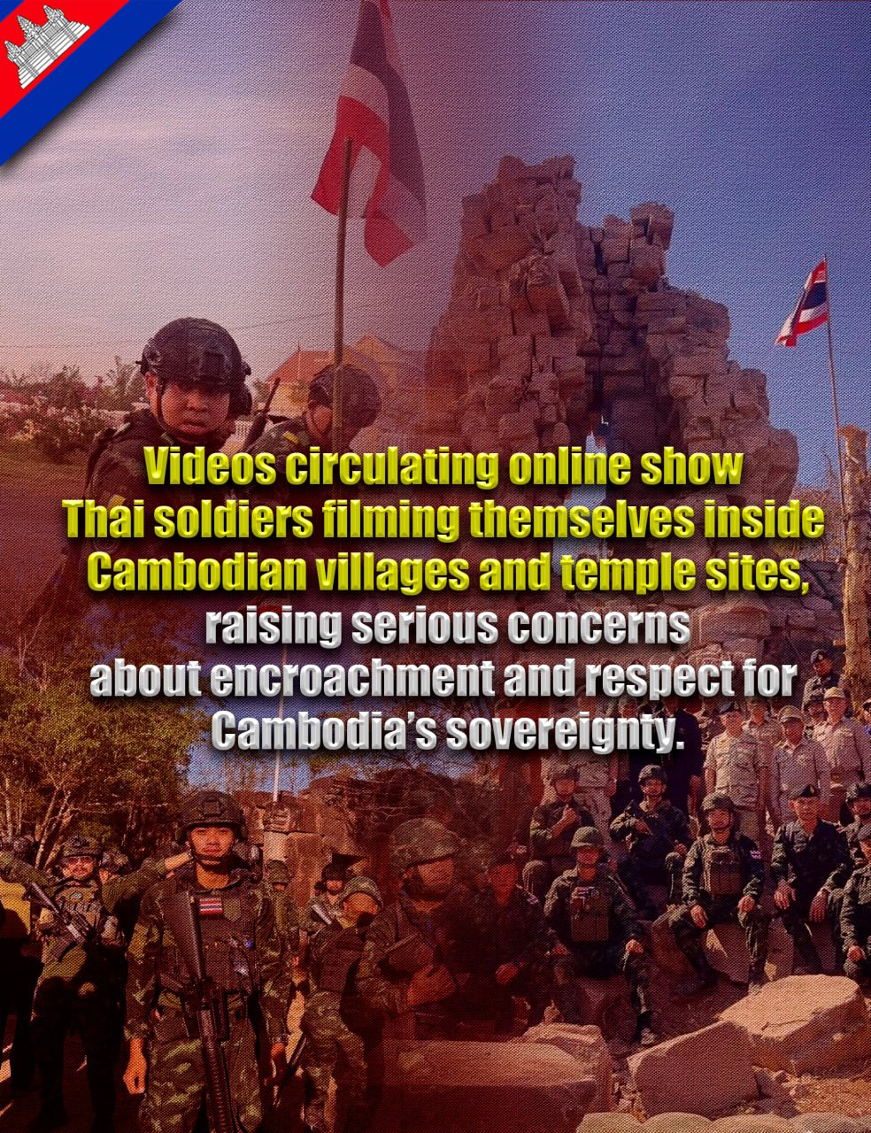 3. Videos circulating online show Thai soldiers filming themselves inside Cambodian villages and temple sites, raising serious concerns about encroachment and respect for Cambodia’s sovereignty.