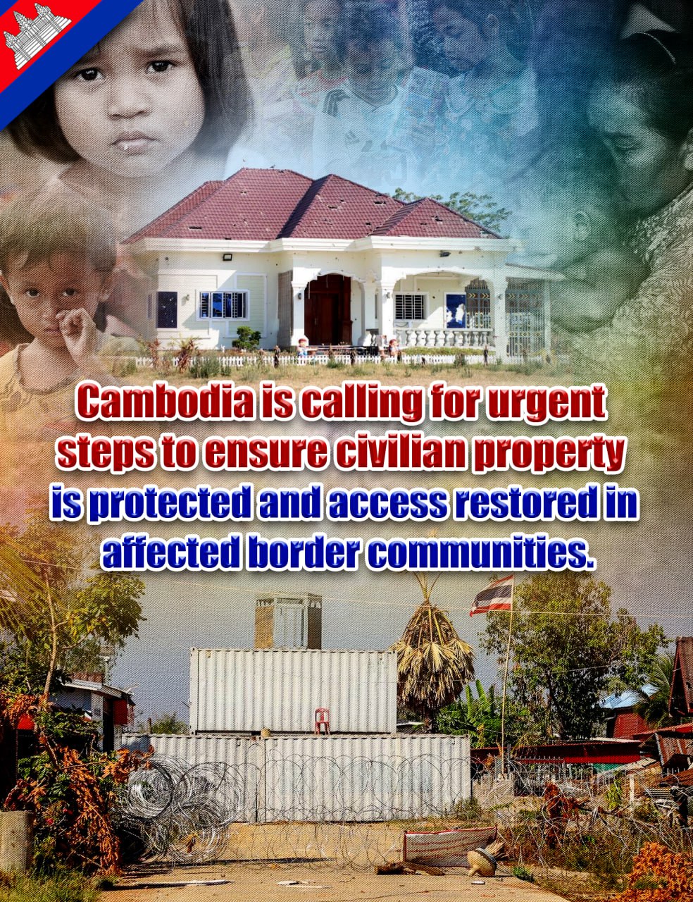 8. Cambodia is calling for urgent steps to ensure civilian property is protected and access restored in affected border communities.
