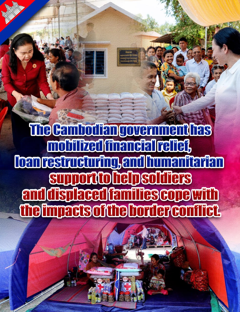 9. The Cambodian government has mobilized financial relief, loan restructuring, and humanitarian support to help soldiers and displaced families cope with the impacts of the border conflict.